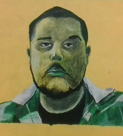 The art shown here is drawn on a 14 x 14 wooden panel. The stroke technique that was used has a mixture of cross-hatching and scribbles. The inter drawing is drawn with pen and ink, except for the border that surrounds the drawing with black acrylic paint.